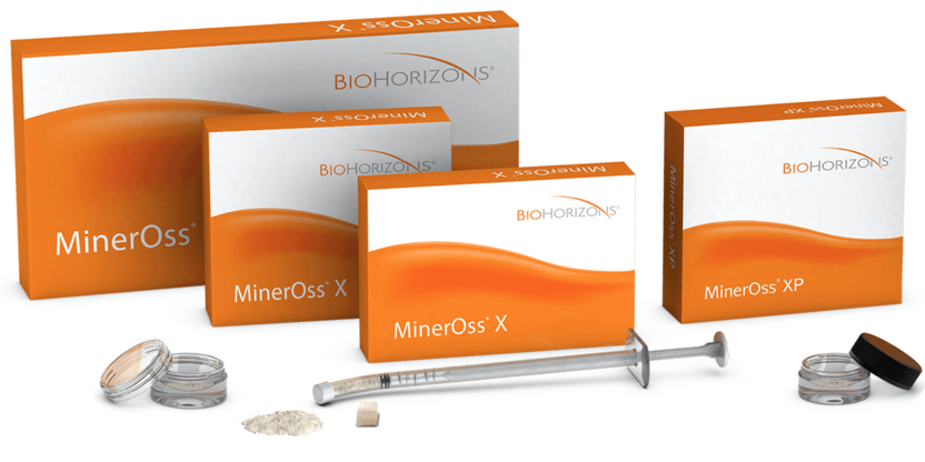 Today, a variety of different materials are available for bone augmentation ¬ attractive alternatives to the patient's autologous bone. The bone graft substitutes MinerOss® family of allografts, MinerOss® X Collagen and Granules as well as MinerOss® XP, Mem¬Lok® RCM and Mem¬Lok® Pliable Membranes family of xenografts set standards in hard and soft tissue regeneration with BioHorizons. These allogeneic and xenogeneiic products are suitable for a wide range of applications.